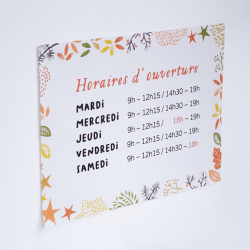 Élise s'est servie de sa charte graphique pour se créer cette feuille avec les horaires de sa boutique.