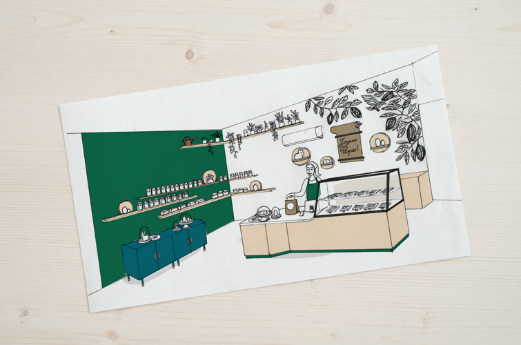 Je trouve que le résultat est vraiment harmonieux. Le travail d’Aurore a été un vrai plus pour La Chocolaterie. Cela m’a apporté une crédibilité professionnelle auprès de mes clients. Ils se sentent bien dans la boutique et j’ai eu de nombreux retours très enthousiastes de leur part. »